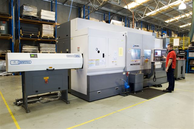 Our machining capacity includes the Okuma Multus multifunction CNC machine. This machine is equipped with double ended spindles for complete machining of parts in one set up. This five axis machine; C, X, Y Z and B; allows operations such as turning, milling, drilling and tapping to be performed at any angle. The machine tool capacity is 80 stations and automatic bar feed up to 100mm diameter. Single work pieces up to 710mm diameter or 1500 mm in length can be accommodated in the machine. The capacity and versatility of our CNC machines enable work pieces of considerable complexity to be produced with a minimum number of operations. Such versatility permits considerable reduction in cost whilst maintaining a high degree of quality and accuracy.